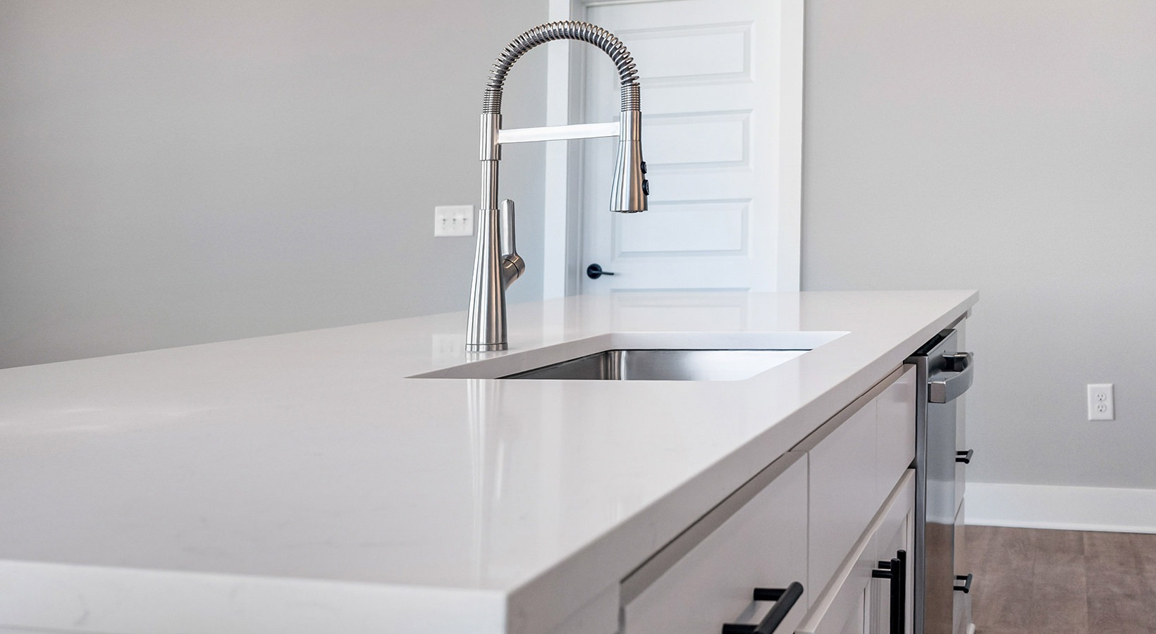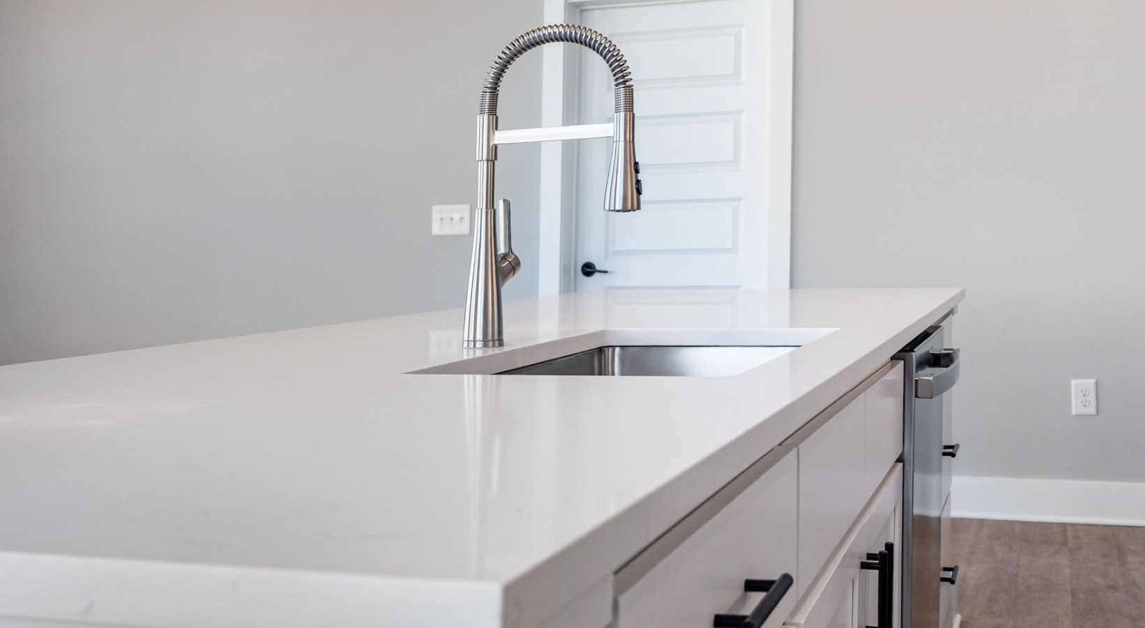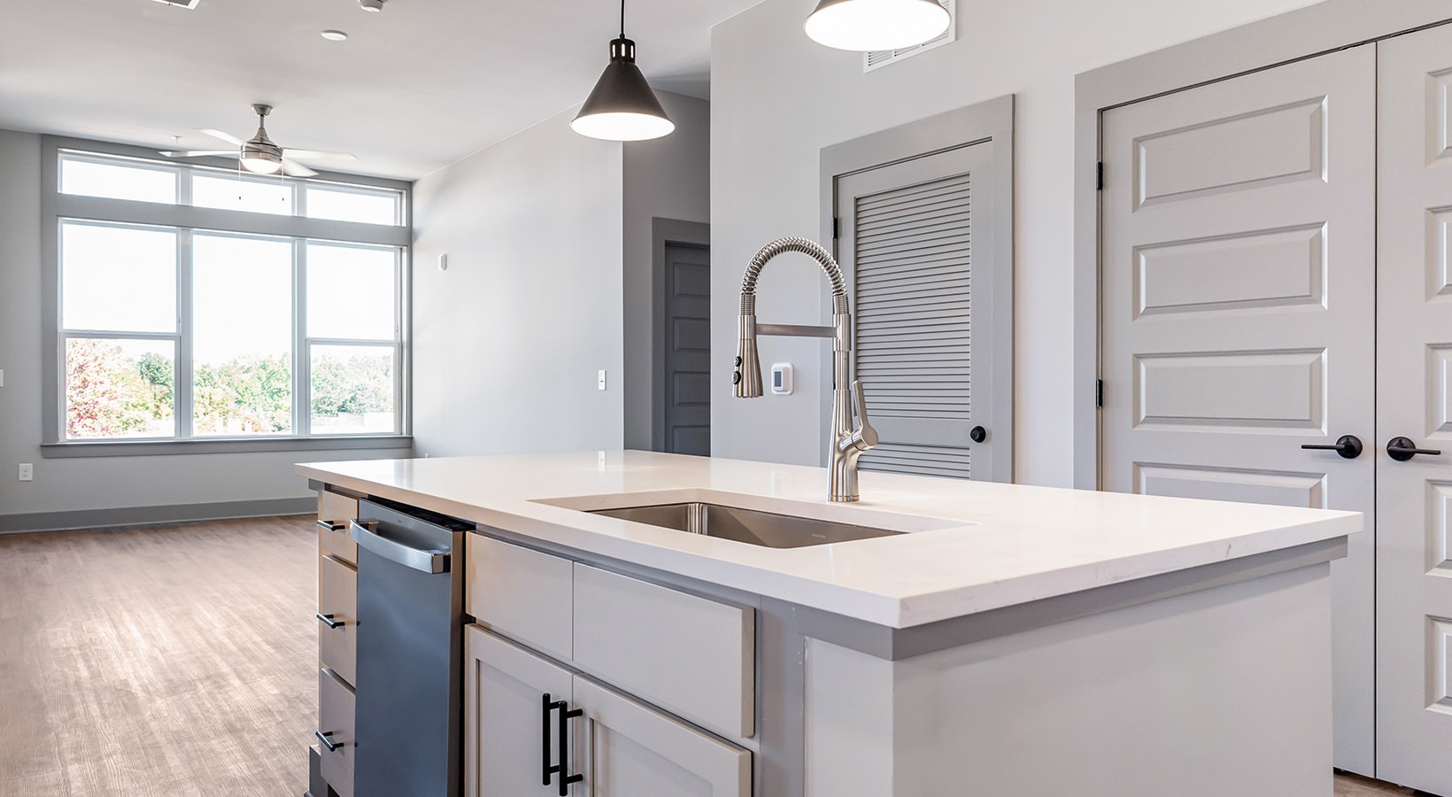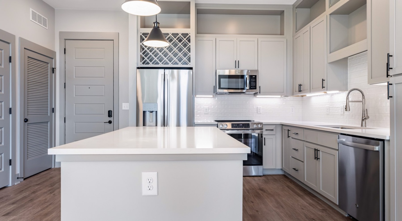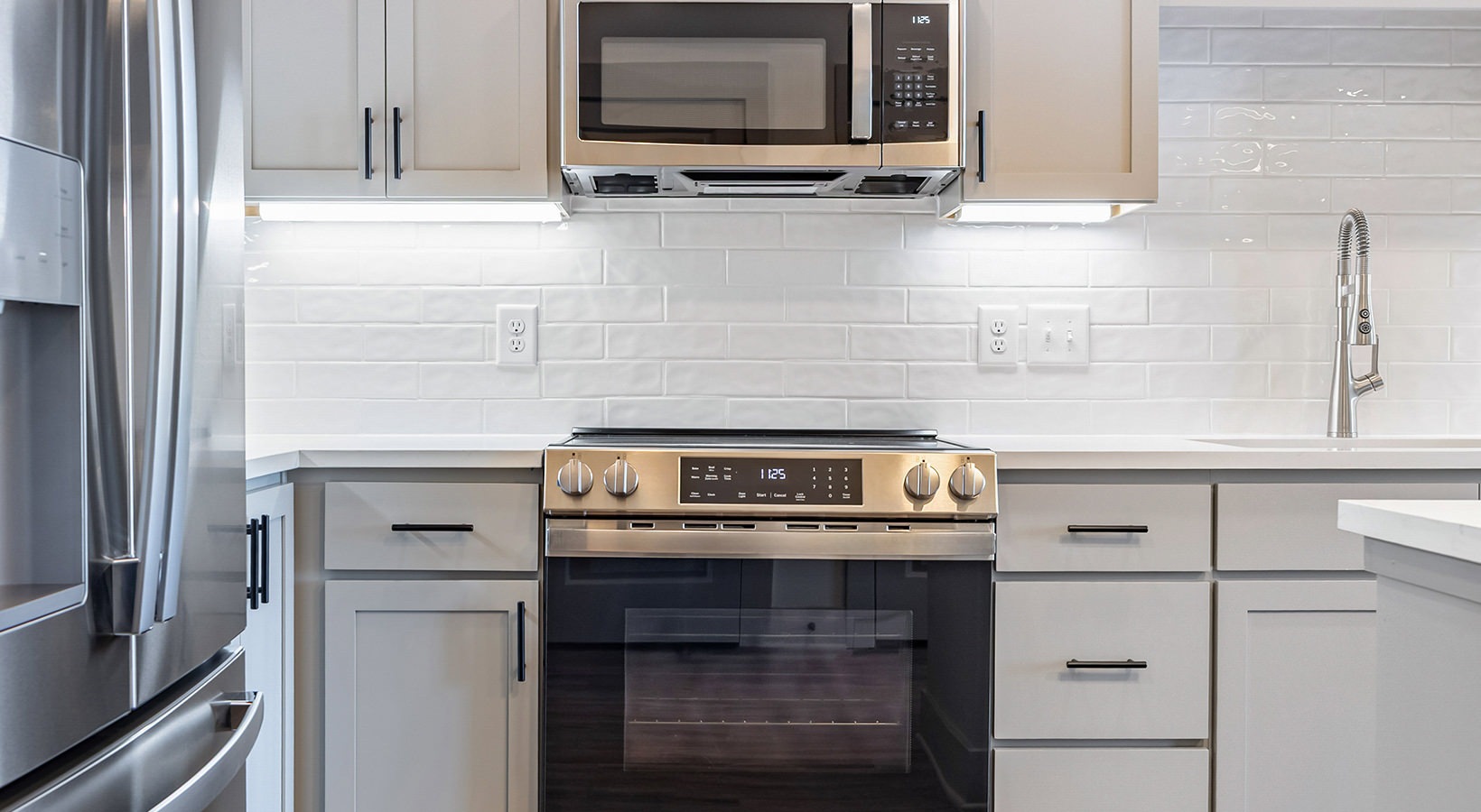 • a kitchen with white cabinets
