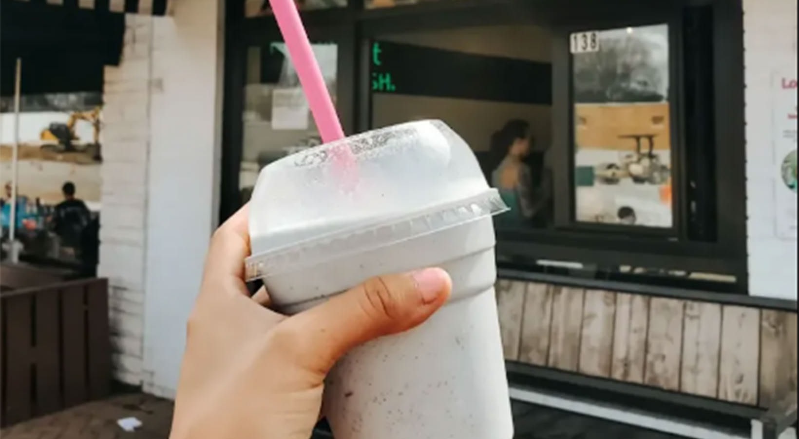• person holding a smoothie